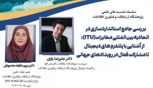 از سلسله نشستهای علمی پژوهشگاه ارتباطات و فناوری اطلاعات، نشست علمی با عنوان «بررسی جامع استانداردسازی در اتحادیه بینالمللی مخابرات (ITU)؛ از آشنایی با پلتفرمهای دیجیتال تا مشارکت فعال در